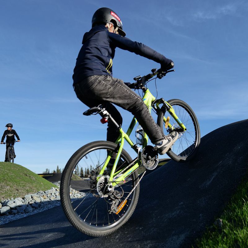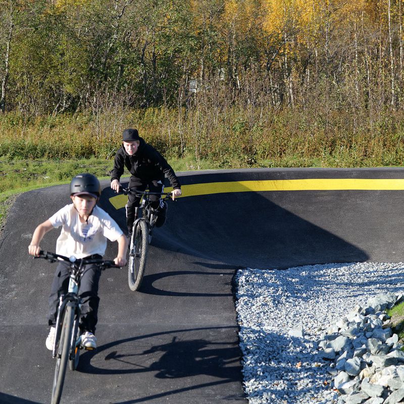 Pumptrack i asfalt med flera svårighetsnivåer i samma bana vilket gör att både nybörjare och erfarna åkare kan njuta av åkningen på sina egna villkor. Banans design styr farten och vilken höjd åkaren ligger på i kurvorna vilket skapar ett naturligt och säkert flöde. Utformningen av banan gör att allt från balanscykel till BMX, skateboard och kickbike kan pumpa sig fram. Pumptracken är en lekfull och inkluderande mötesplats för både barn, ungdomar och vuxna.